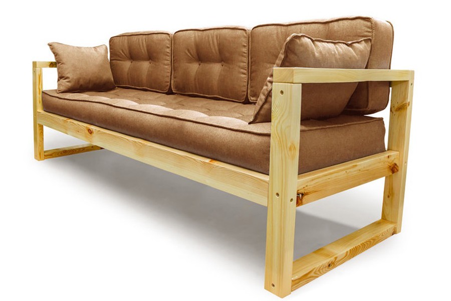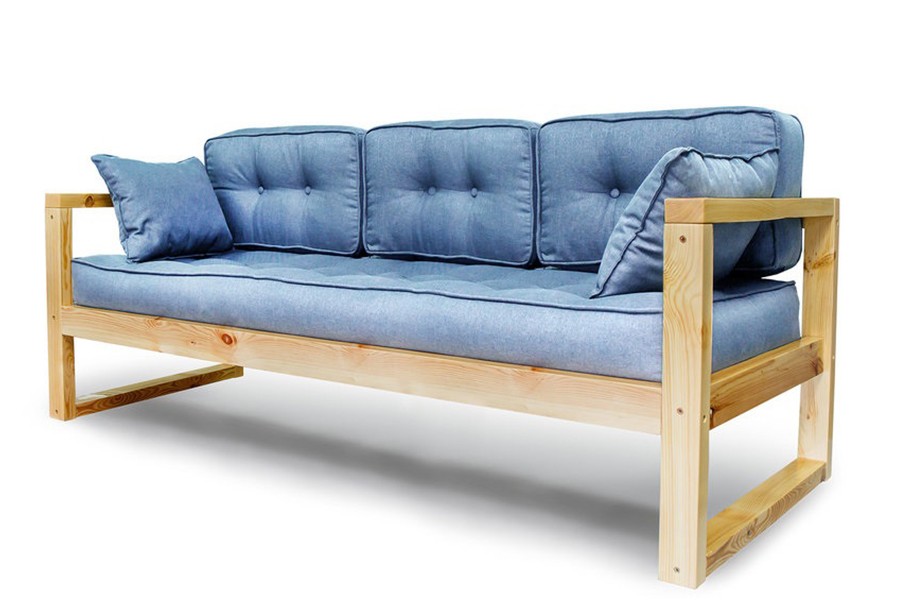 Деревянный каркас и мягкие подушки трёхместного дивана Астер создают минималистический дизайн подходящий для дачного домика.