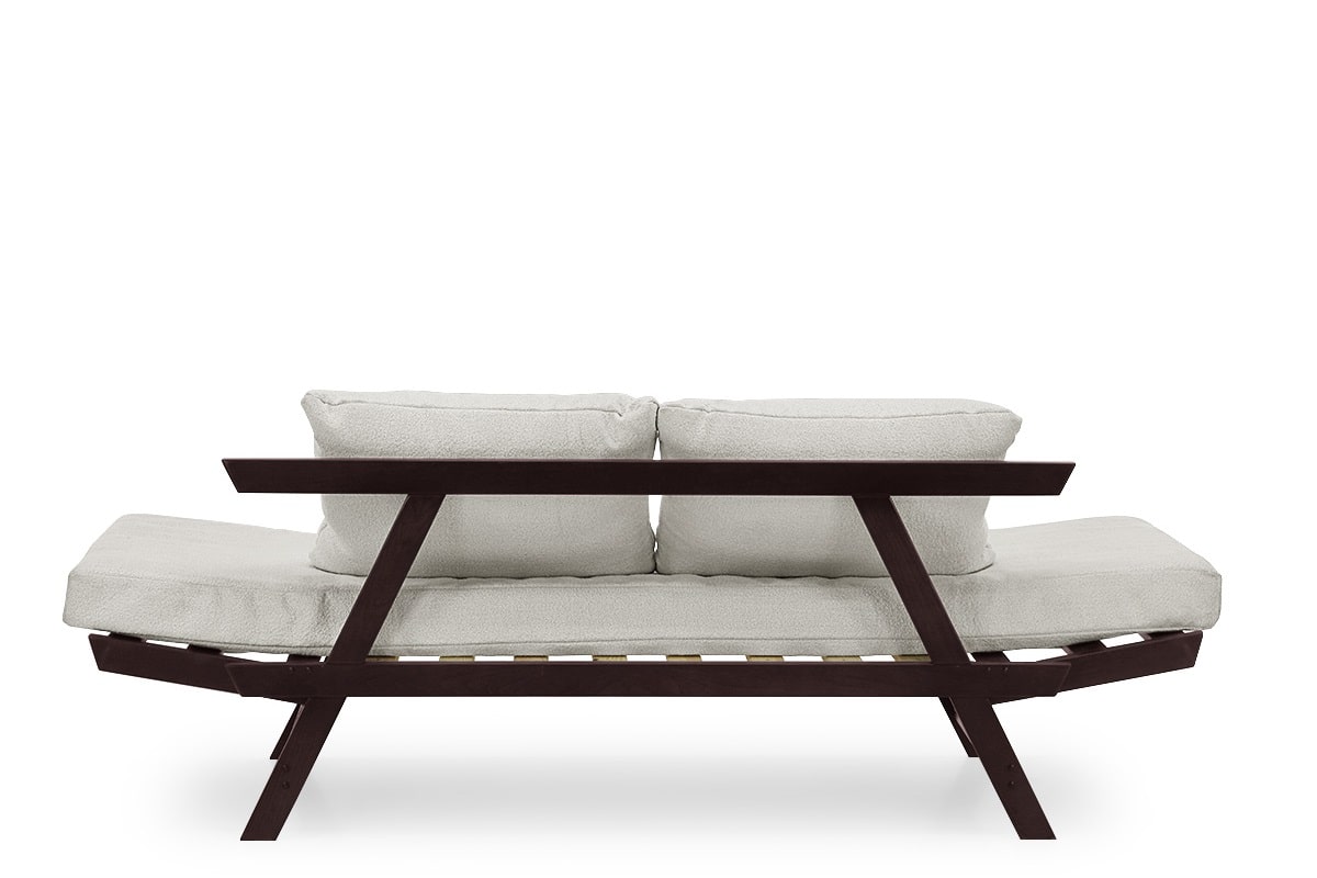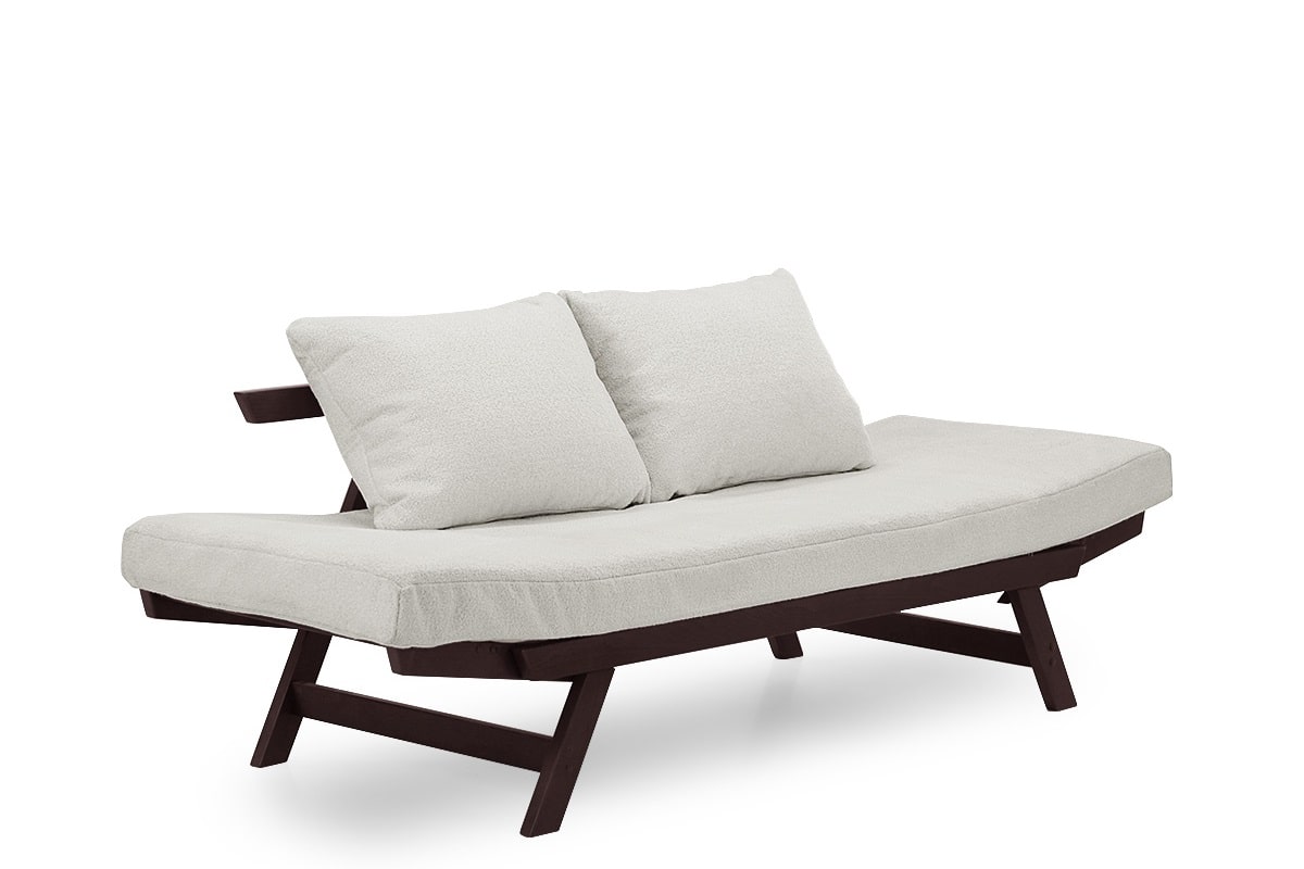 Диван-кушетка Кроко 2 с деревянным каркасом и мягким матрасом с подушками оснащён откидными подлокотниками образующими спальное место. Недорогое и практичное решение для дома и дачи.