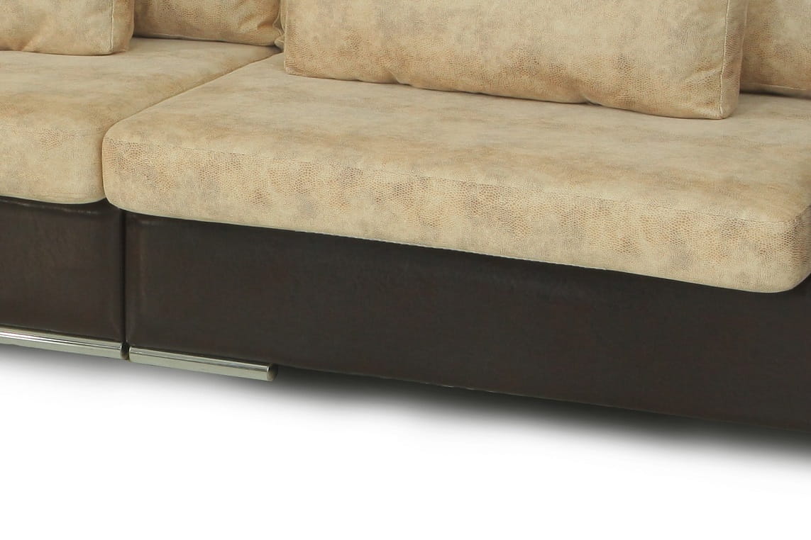 Подчеркнуть формы дивана Монца можно с помощью комбинаций тканей. Используйте 2-3 разных, но близких по цвету, материала.