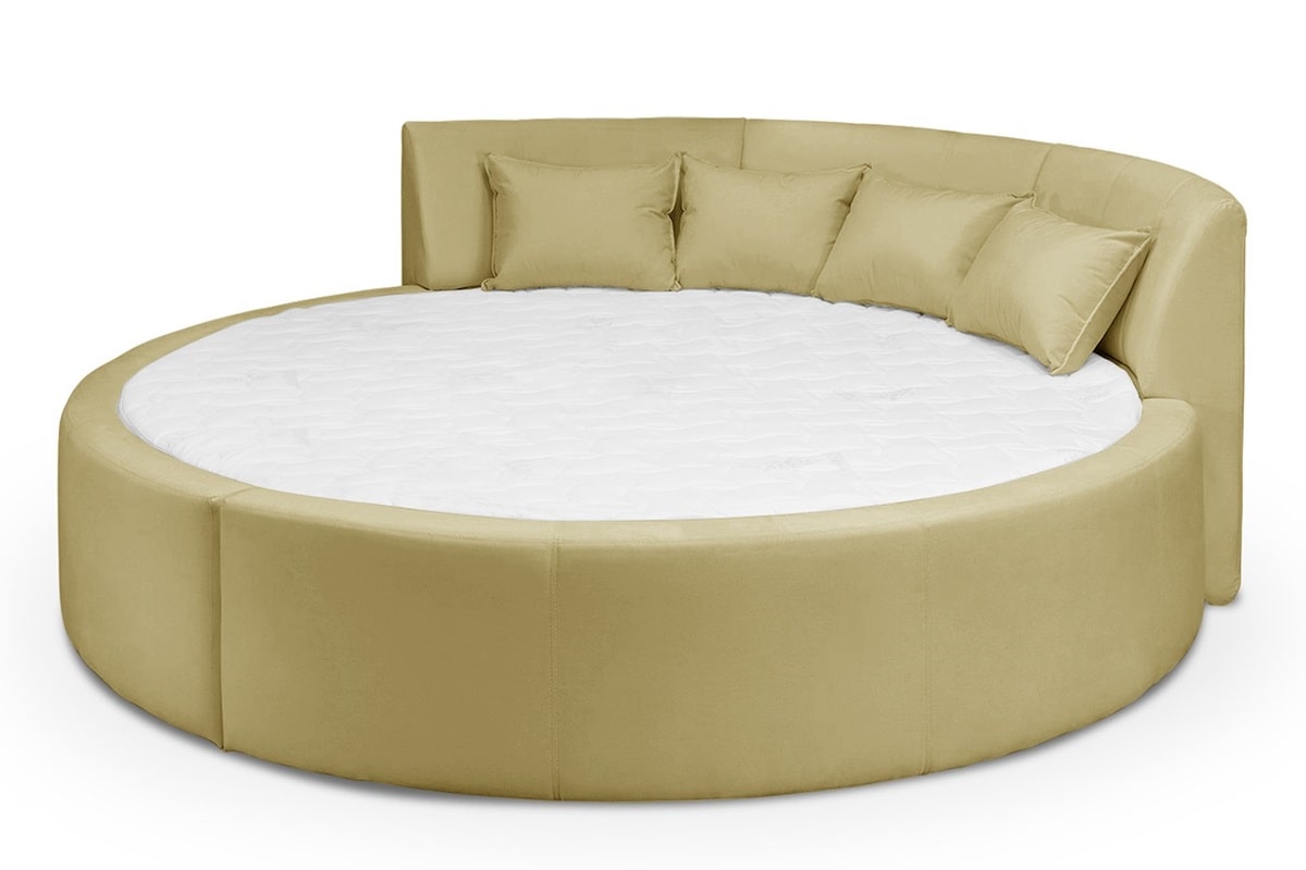 Выбирайте цвет и фактуру для круглой кровати Индра ориентируясь на дизайн спальной комнаты. Доступны все варианты тканей, искусственной и натуральной кожи, экокожи. Допускается использование материалов с узором или рисунком.