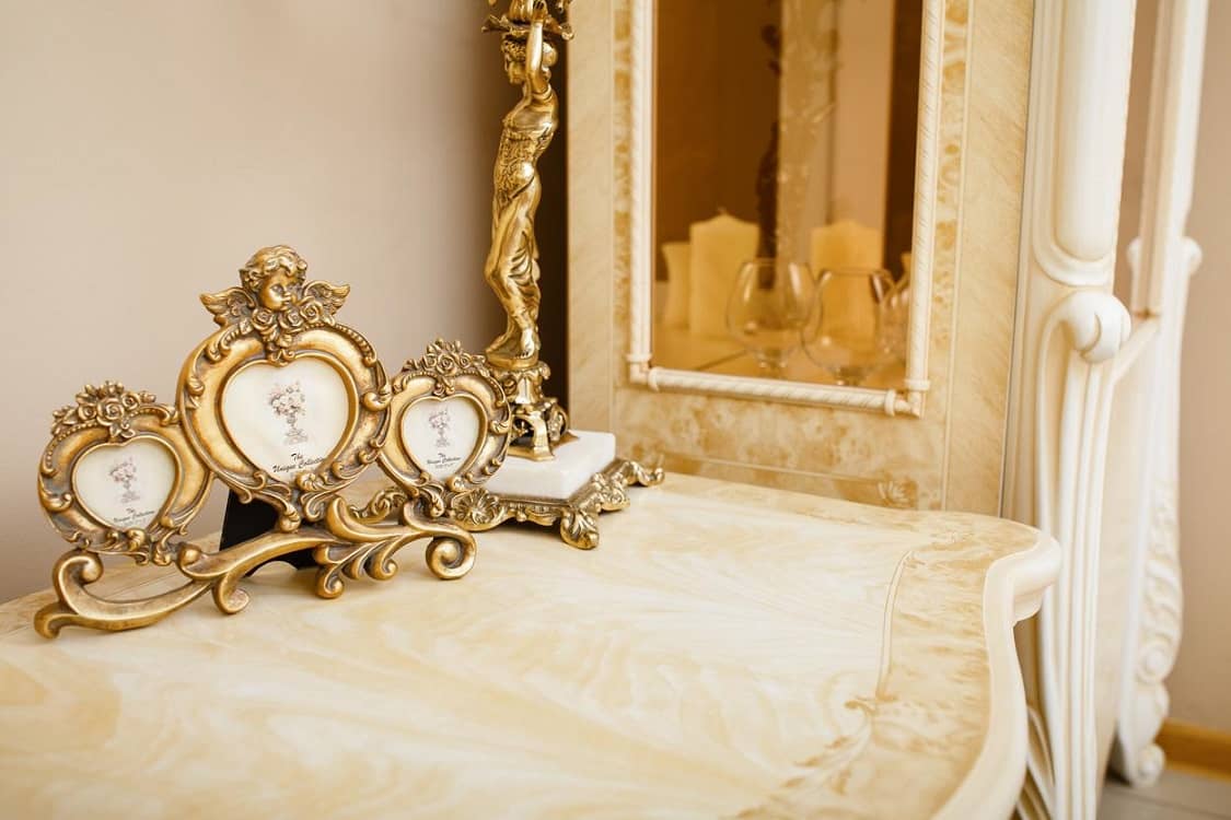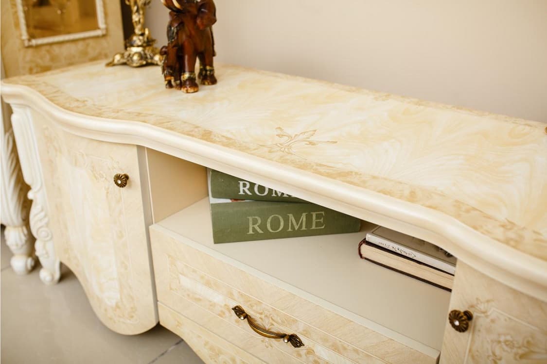 Различные цветовые решения: орех, бежевый, белый, белый с серебром и белый с золотом.