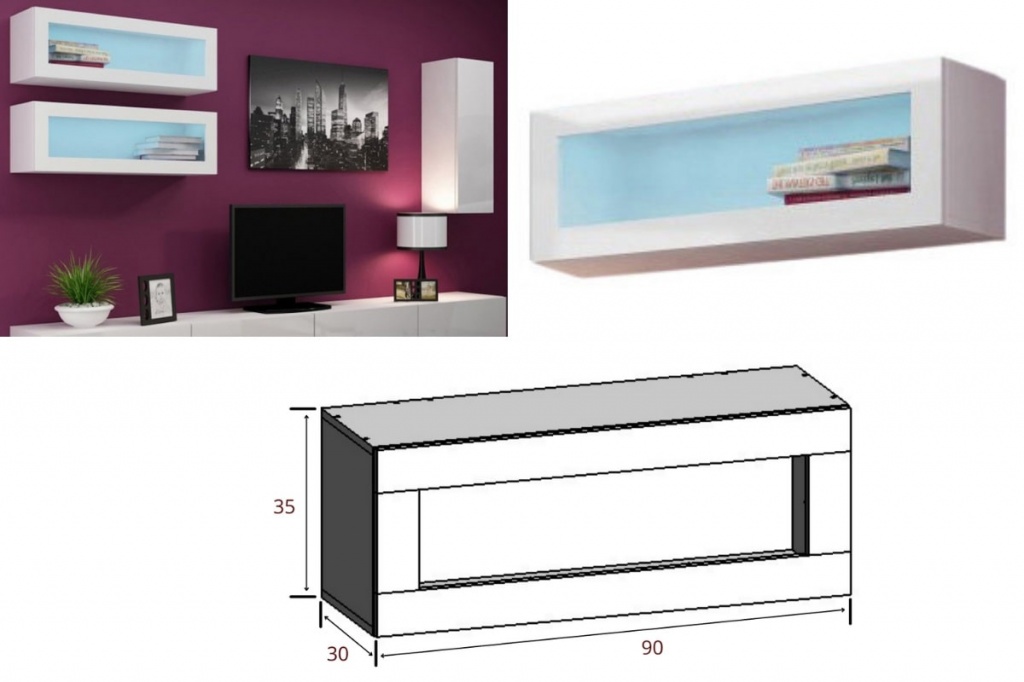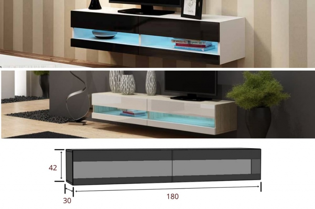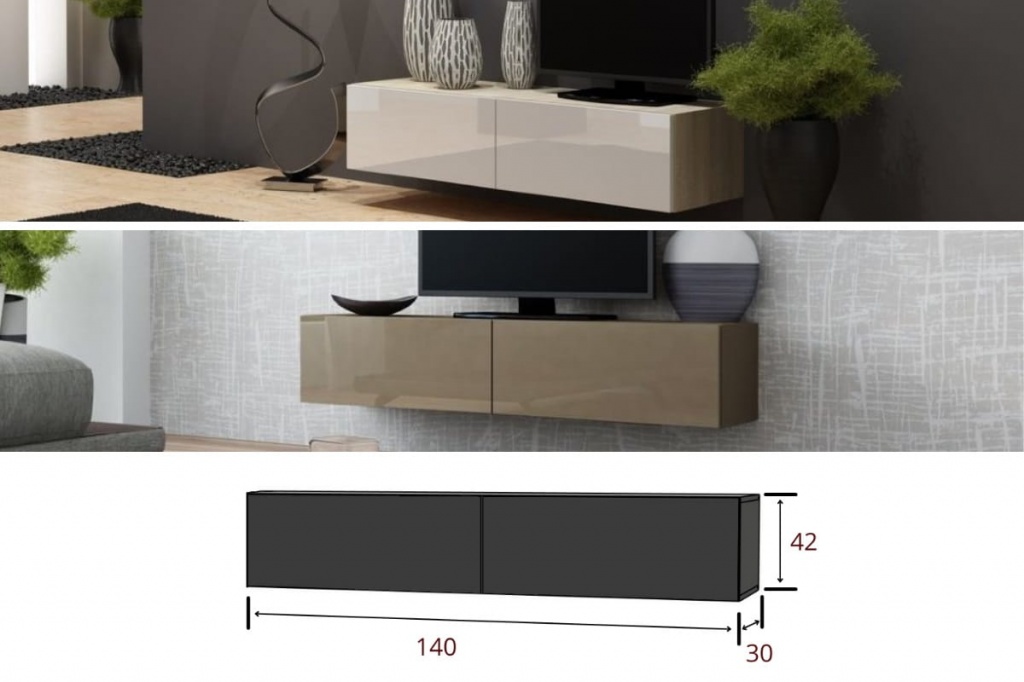 Размеры и фото открытой навесной ТV тумбы Виго