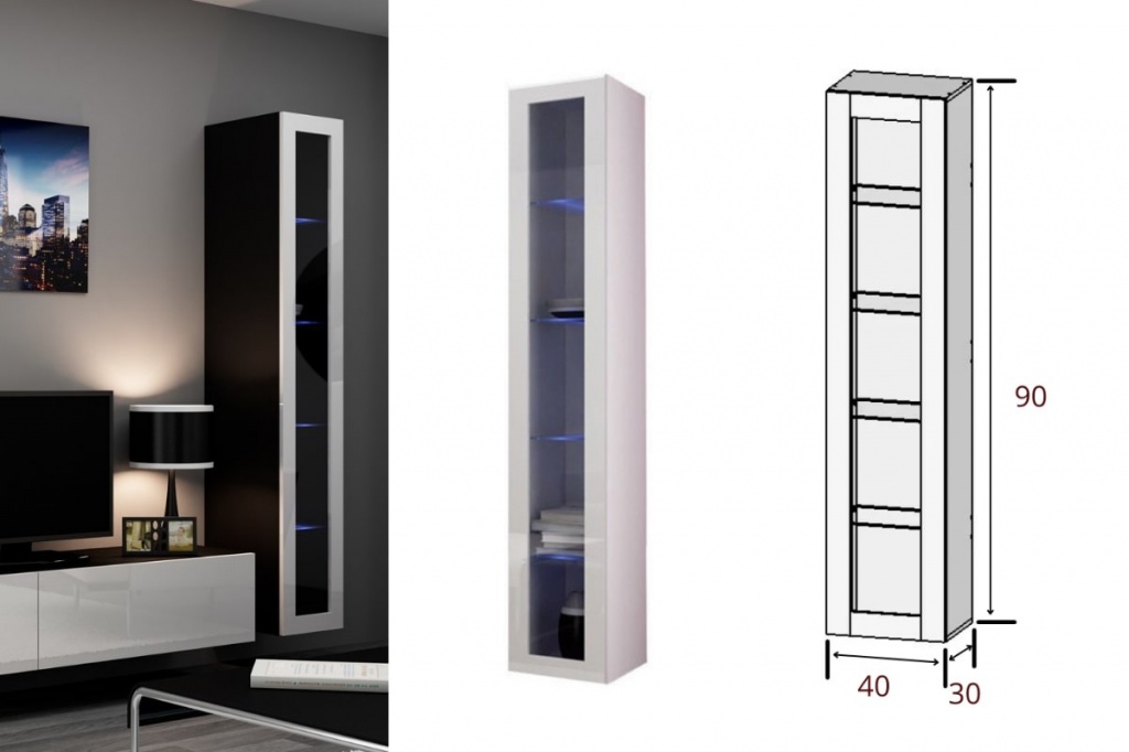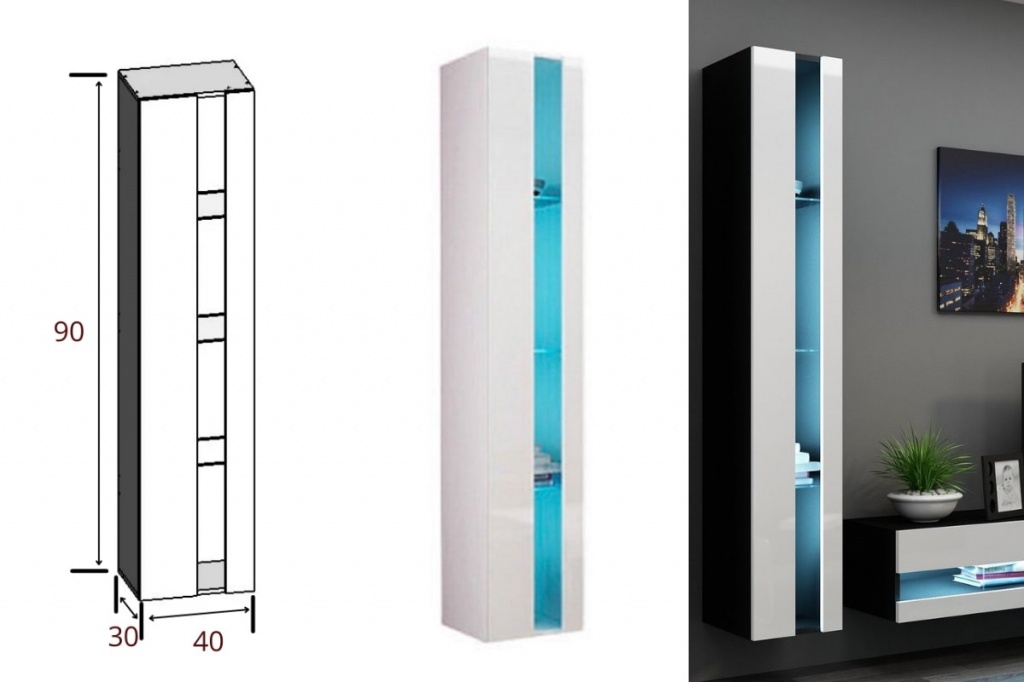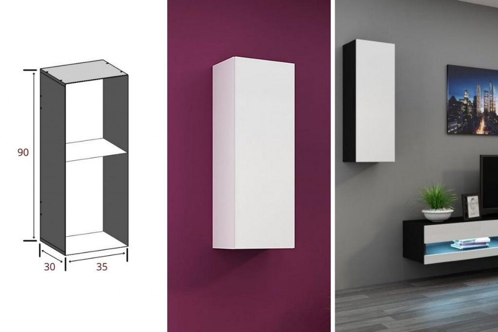 Размеры и фото навесного малого вертикального пенала гостиной Виго