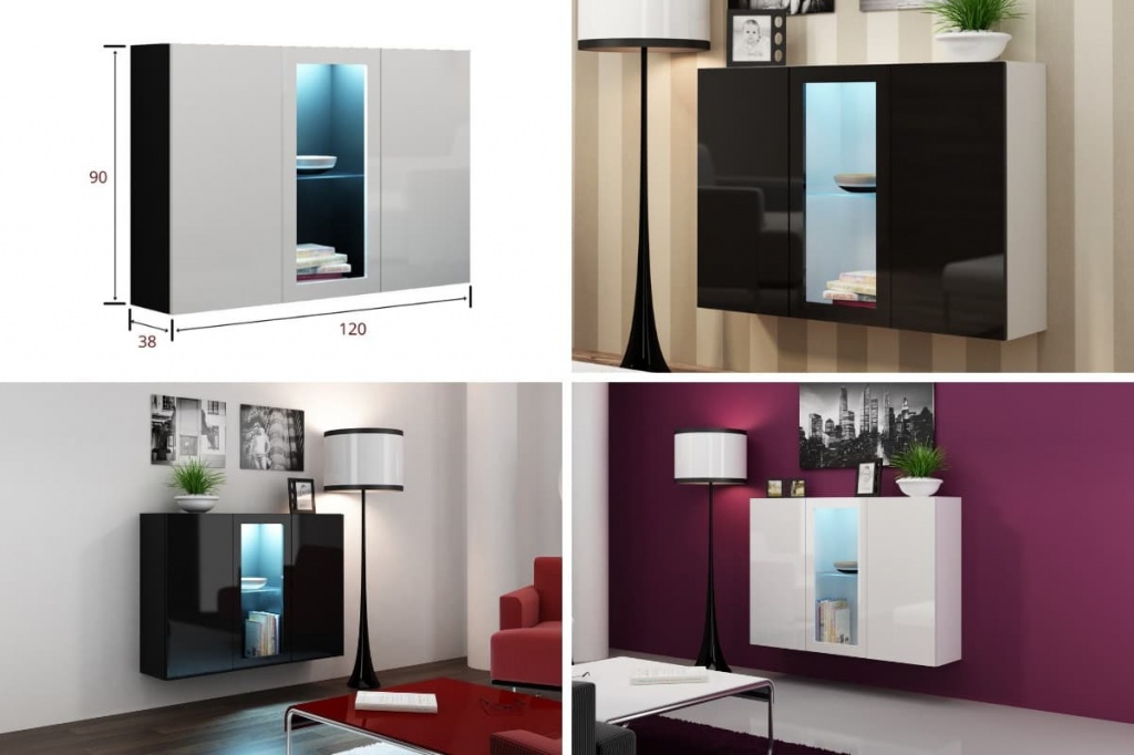 Размеры и фото витрина навесной малой горизонтальной, модульной гостиной-горки Виго