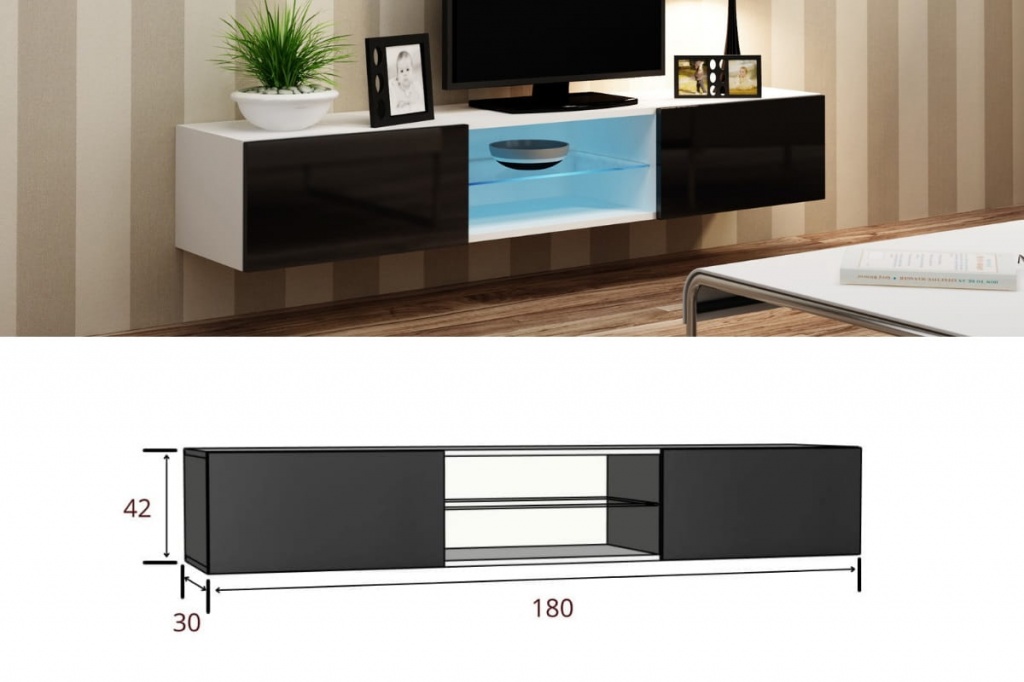 тумба ТV со стеклянной полкой 180x30x42