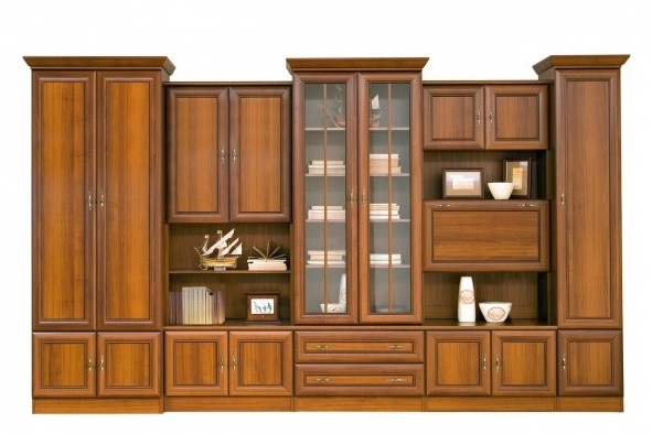 Дизайн гостиной Вики состоит из модулей которые можно чередовать в любой последовательности. Представленная стенка Вики 2 включает в себя пять элементов, за исключением низкого шкафа.