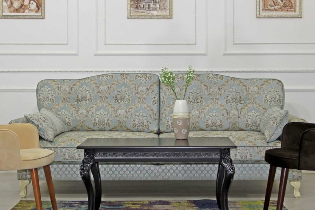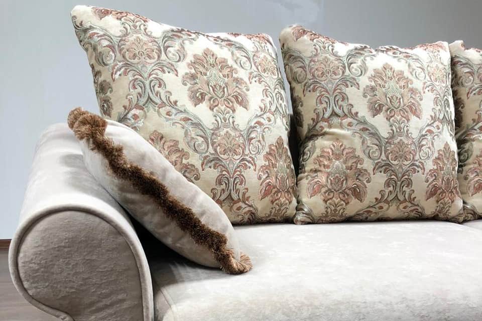 Традиционная эстетика классицизма с дворцовыми вензелями и мелким дамасским узором, которые при производстве мягкой мебели используются как отдельные ткани, так и в дуэте. Авторский фигурный вензель из лепестков с блестящей нитью, выделяющейся текстурой и оригинальной цветовой гаммой, передаёт благородный и законченный вид, ориентируя на дворцовые интерьеры в стиле: Ренессанс, Барокко, Рококо. Мелкий дамасский узор, как орнамент уходит корнями к арабескам, делая ткань уместной для интерьеров в восточных стилях: Арабском, Колониальном, Марокканском.
