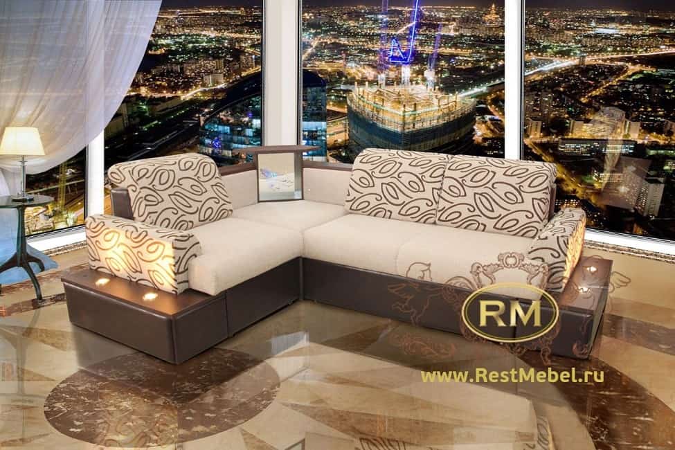 Угловой диван Олимп с баром и подсветкой Диван угловой Соло с кресельной секцией